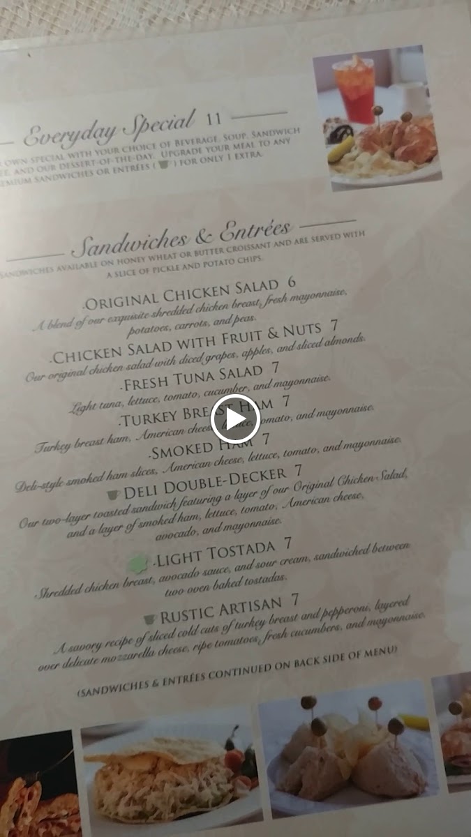The overall menu supports casual visits for light meals, snacks, or drinks. Typical orders include sandwiches paired with soups or beverages, catering to both quick stops and relaxed dining experiences.